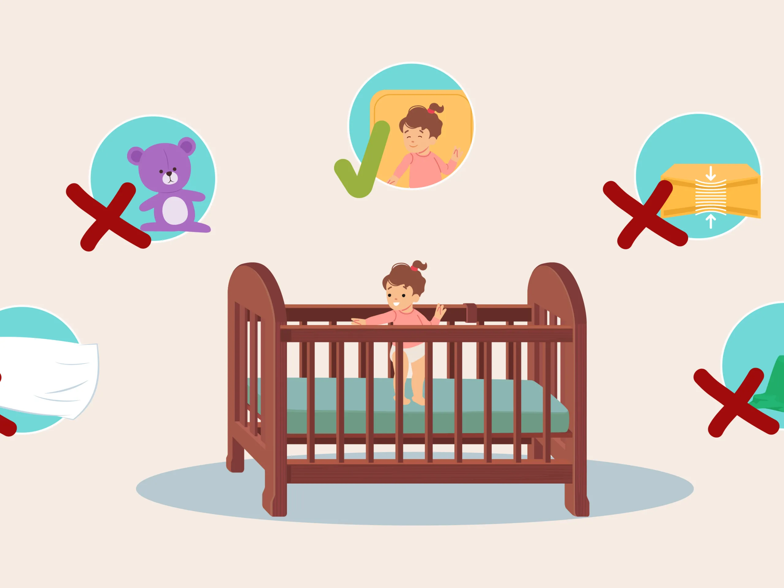 خلال الأشهر القليلة الأولى، تجنبي الألعاب المحبوبة والبطانيات المريحة وجلد الغنم أو مصدات المهد. ويجب تجنب أي شيء يمكن أن يعيق التنفس.