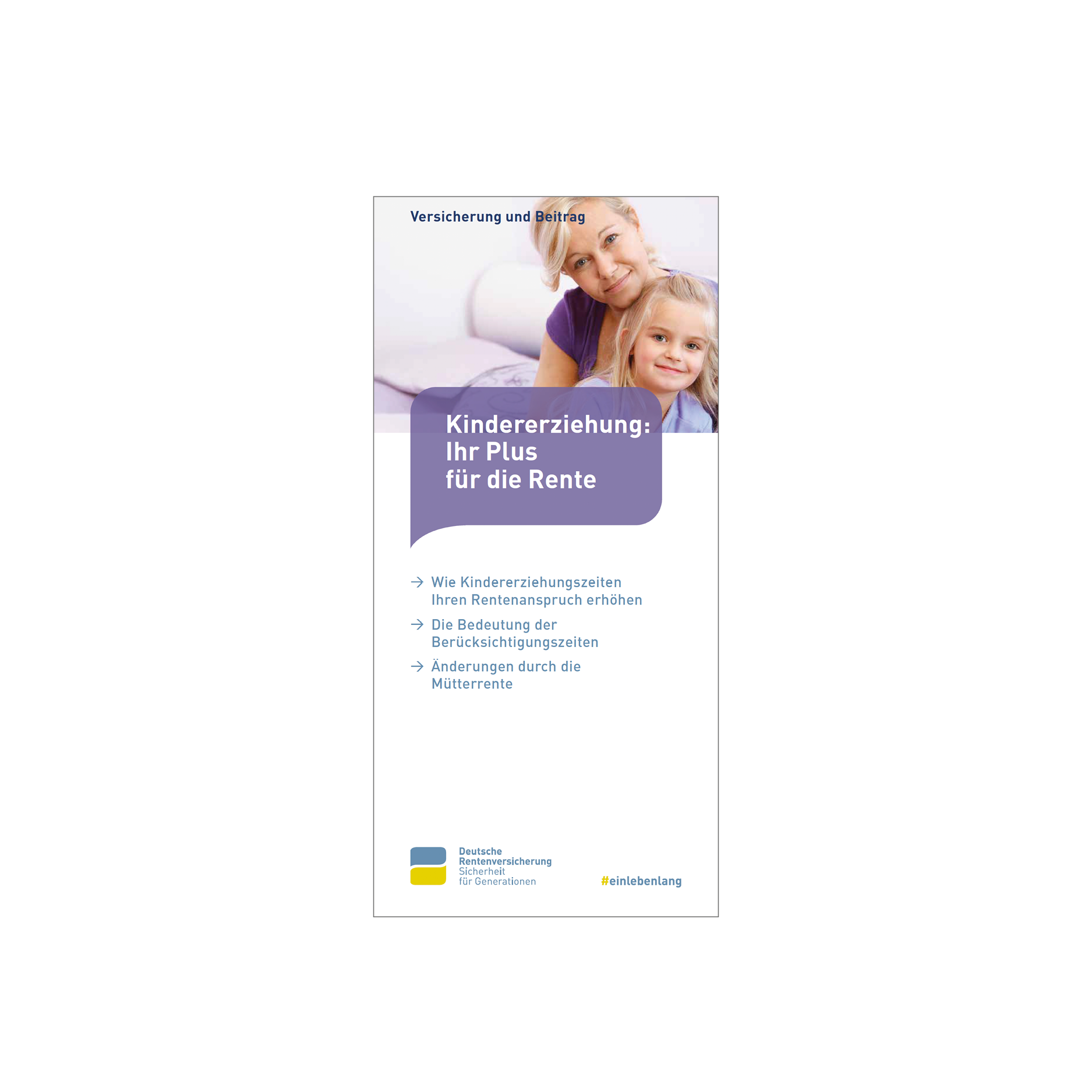 Wenn Sie ihr Kind betreuen und daher vorübergehend nicht oder nur eingeschränkt arbeiten können, erhalten Sie eine Gutschrift: Die Erziehungszeiten werden auf Ihre Rente angerechnet. Damit wird gewährleistet, dass Sie einen angemessenen Ausgleich in der Rentenversicherung erhalten und durch die Betreuung Ihres Kindes nicht schlechter gestellt werden.