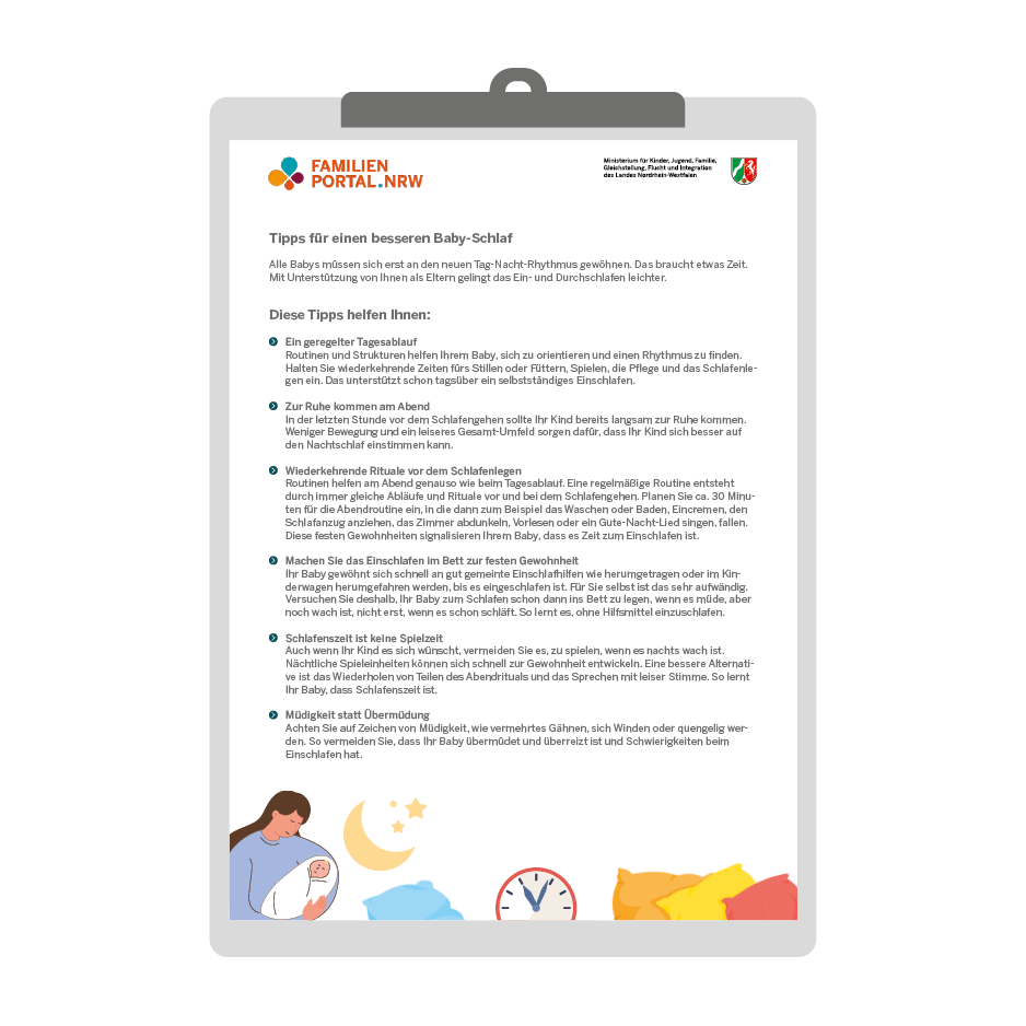 Wenn Ihr Kind Schlafprobleme hat, Sie Fragen zur sicheren Schlafumgebung haben oder sich Sorgen machen, sprechen Sie mit Ihrer kinderärztlichen Praxis.