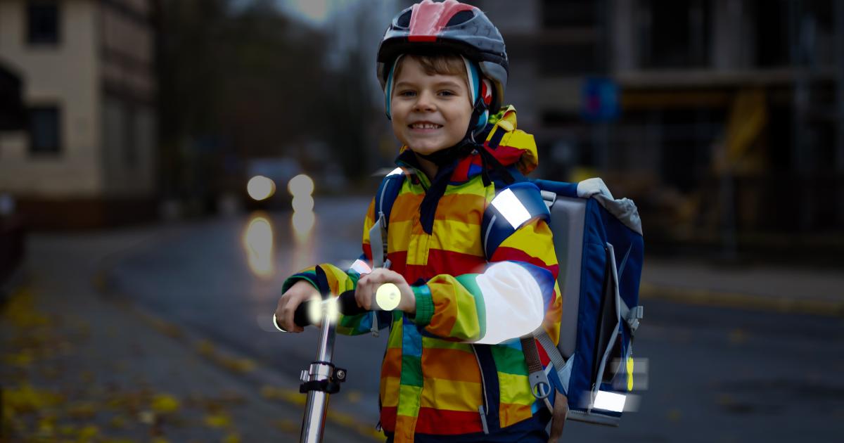 • Sichtbarkeit: Der beste Schutz ist, Reflektoren und Blinklichter zu tragen, damit andere Verkehrsteilnehmende Ihr Kind gut sehen können. Je auffälliger, desto sicherer.