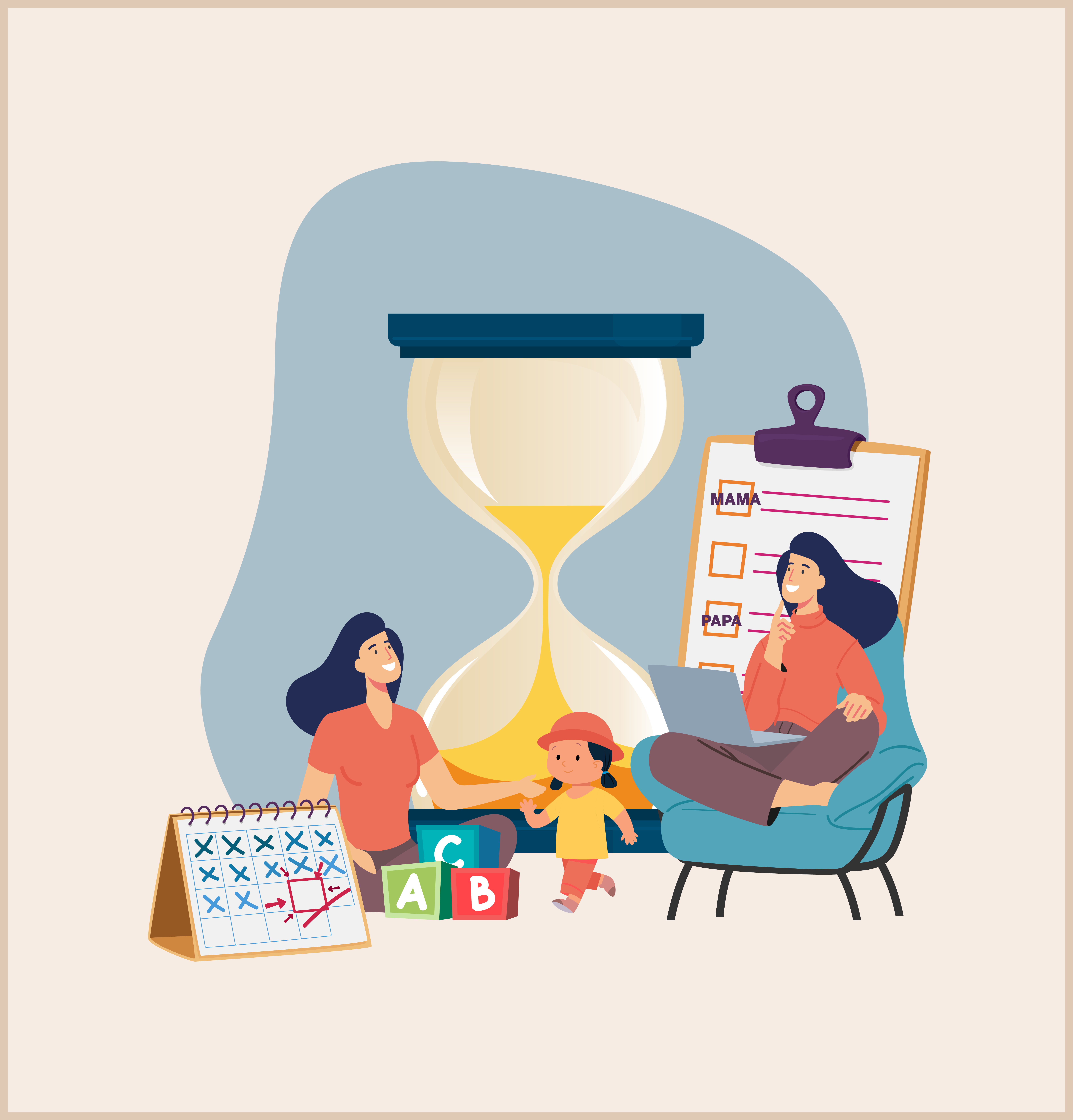 After the birth, your child will initially play the leading role around the clock. If you then want to share work and parenting duties with your partner, it is important to adjust to a different rhythm early on. Think about how many hours a week you both want to and can work and discuss this with your employers. Flexible working hours or the option of working from home make it easier to balance family and career. If you work in a company with more than 15 employees, you have a good chance of being able to work part-time.