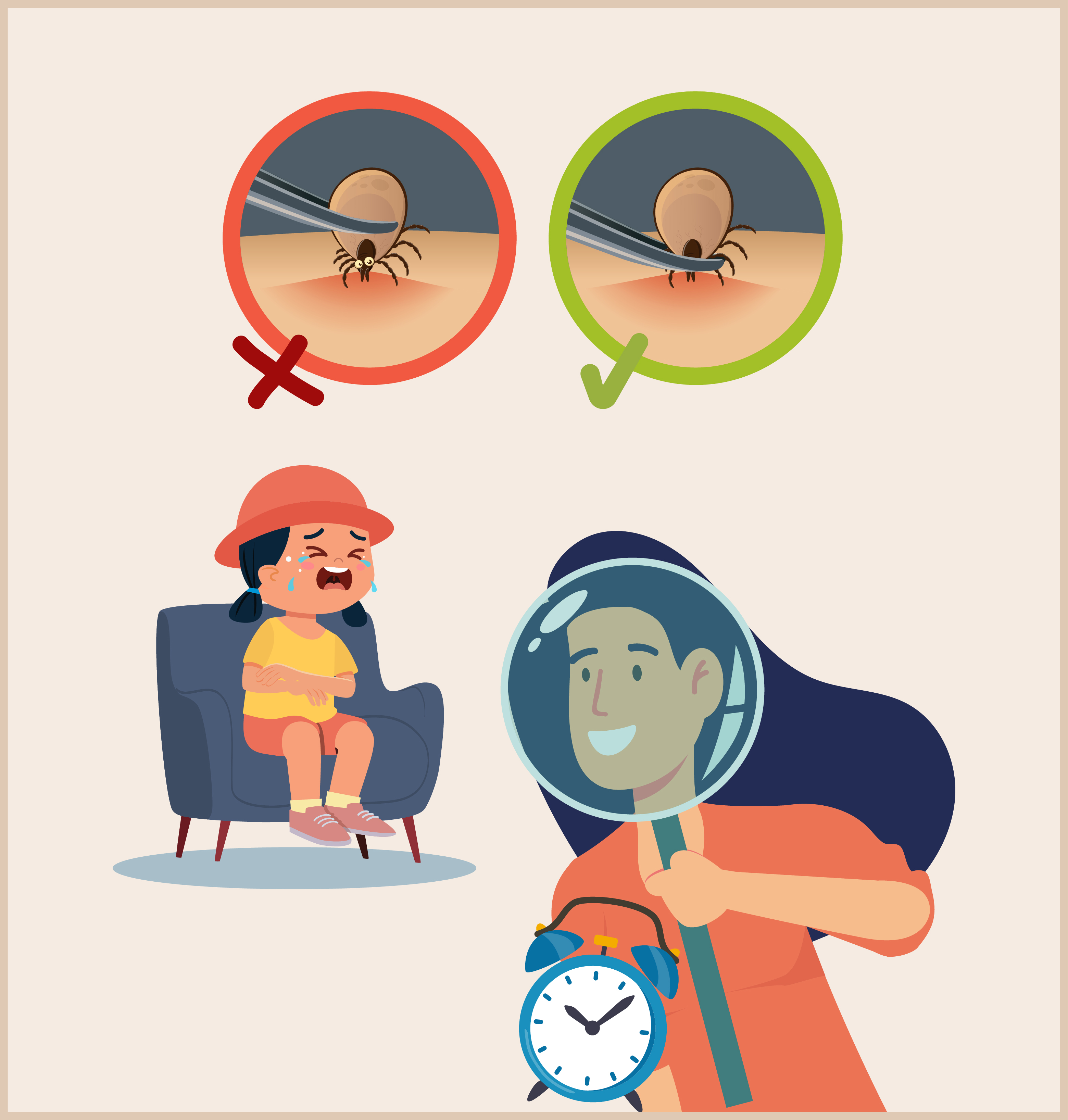 - Important : évitez d'écraser ou de tordre la tique. Cela pourrait faire éclater le corps de la tique et introduire des bactéries dans le corps de votre enfant.