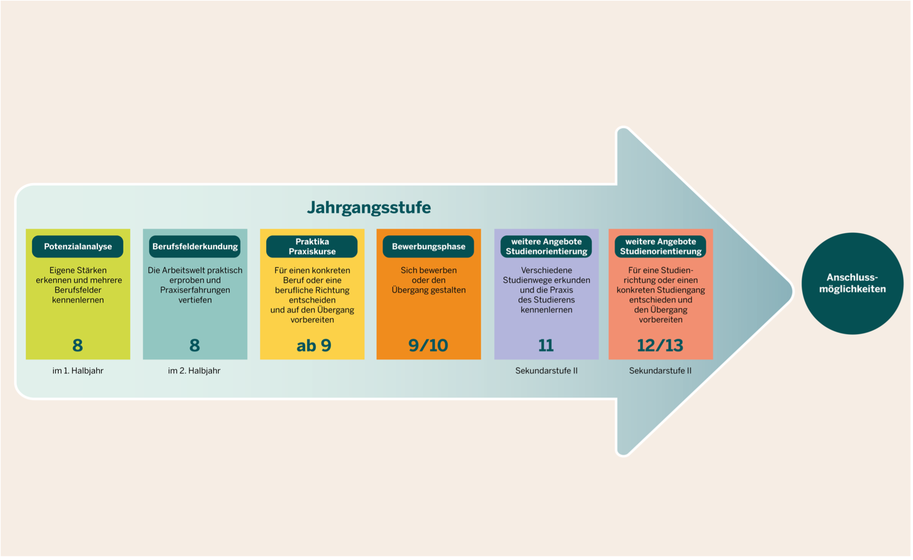 Наразі в Німеччині існує 324 визнані навчальні професії в цих галузях: Промисловість, кваліфіковані професії, державна служба, домашнє господарство, сільське господарство, морське судноплавство та вільні професії. Але яка професія і в якому секторі є правильною? Це питання виникає вже в шкільні роки. Батьки є хорошим джерелом порад у процесі вибору професії, оскільки вони найкраще знають свою дитину. Крім того, багато шкільних та цифрових пропозицій допомагають у профорієнтації. Учні також повинні скористатися можливістю поговорити з консультантом з питань кар'єри про свої особисті можливості і про те, як знайти роботу своєї мрії. Молоді люди можуть домовитися про безкоштовну консультацію в місцевому агентстві з працевлаштування.